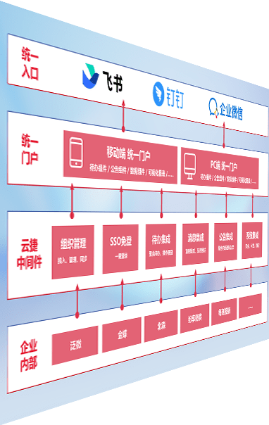 对协作平台提供支持服务,,,支持企业应用与协作平台对接,,,包含组织同步、、、、消息集成、、、、待办集成等。。。。支持目前主流的协作平台:钉钉、、、企微和飞书。。。